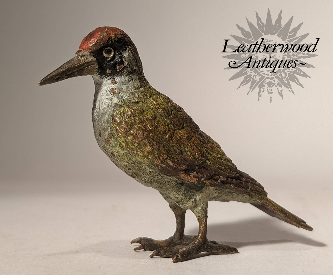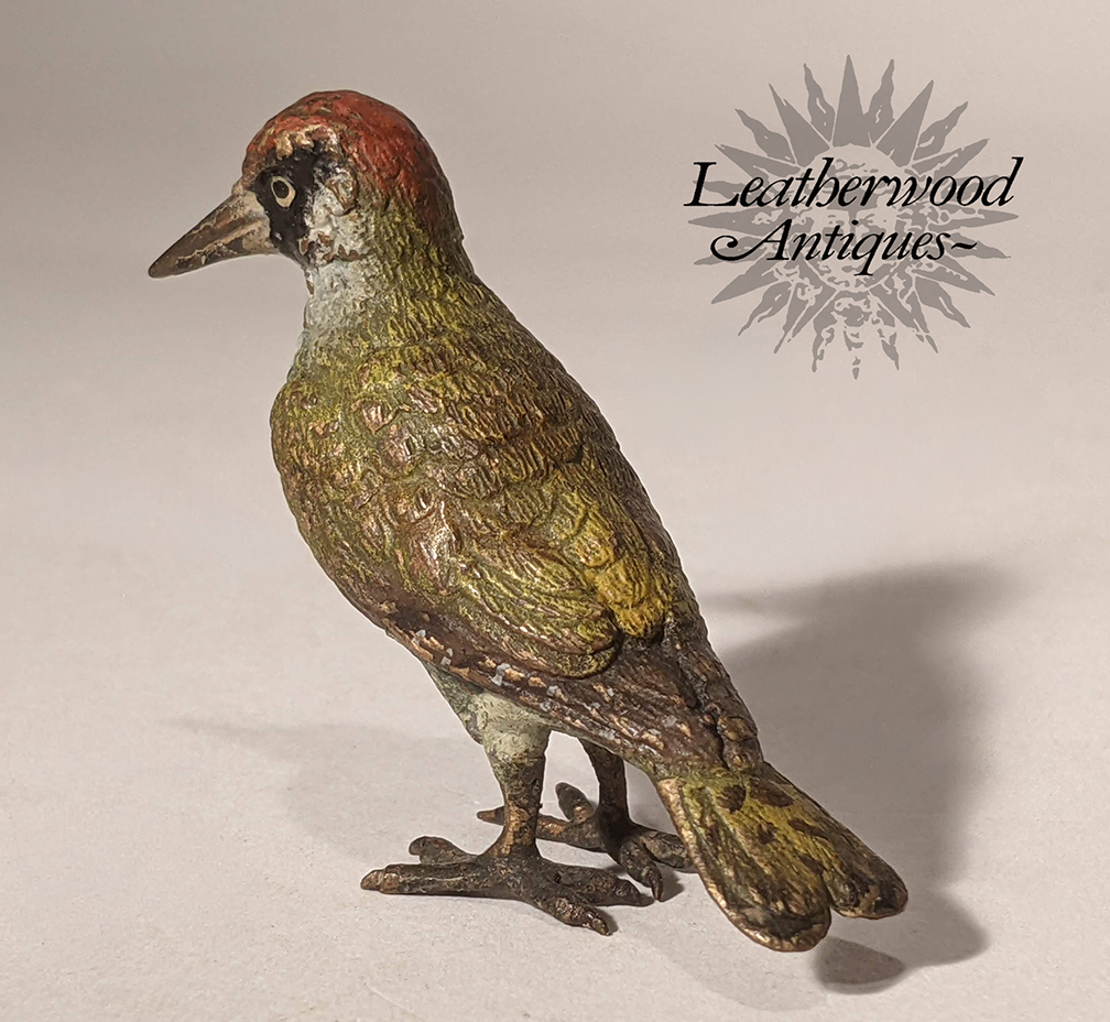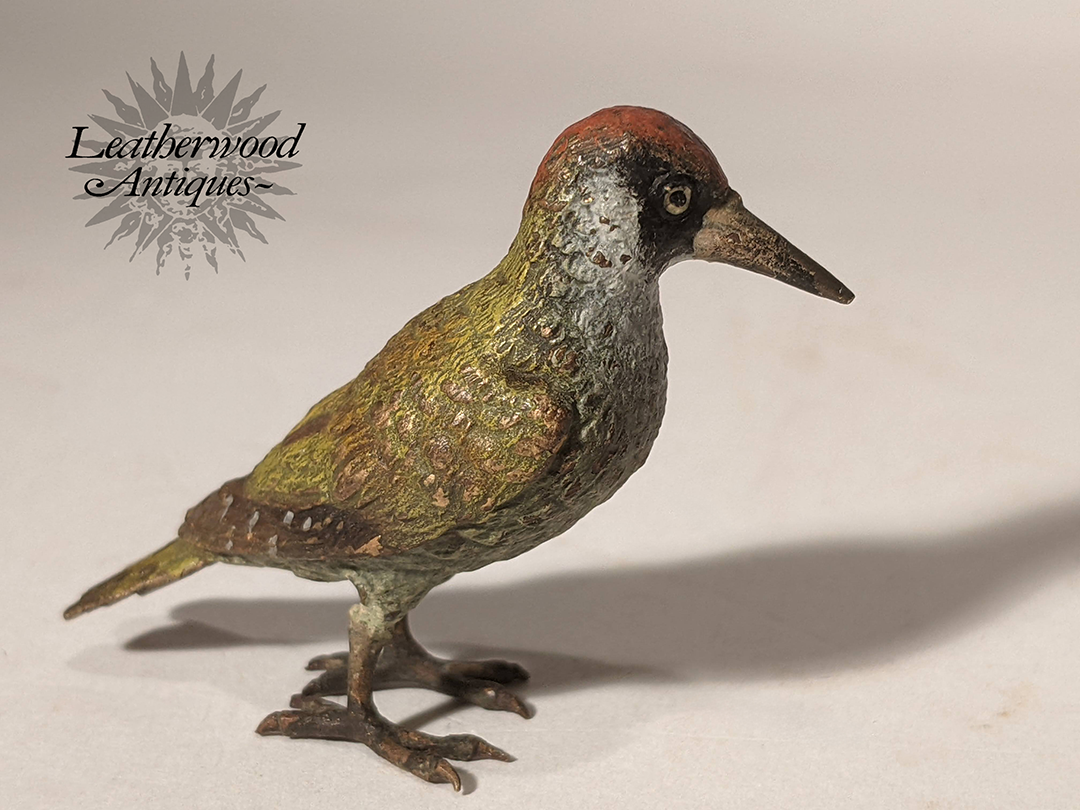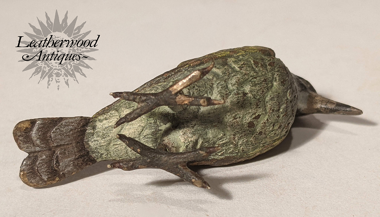 Red-breasted well-formed cold-painted Vienna Bronze bird ~ nice surface. Stamped ''Geschutz'' underneath tail. c. 1880.