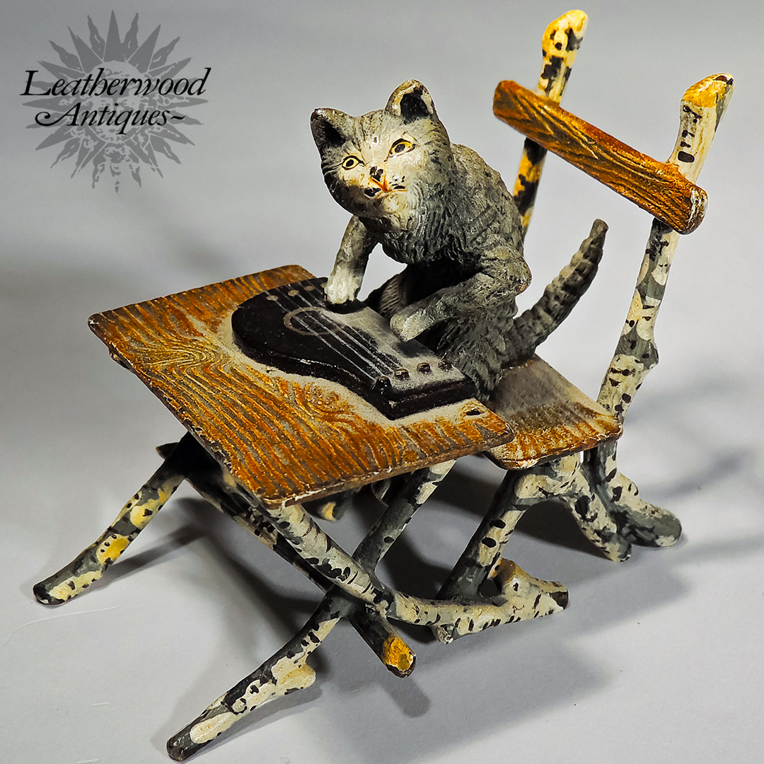 Cute cold-painted Vienna Bronze cat playing a violin. c. 1900.