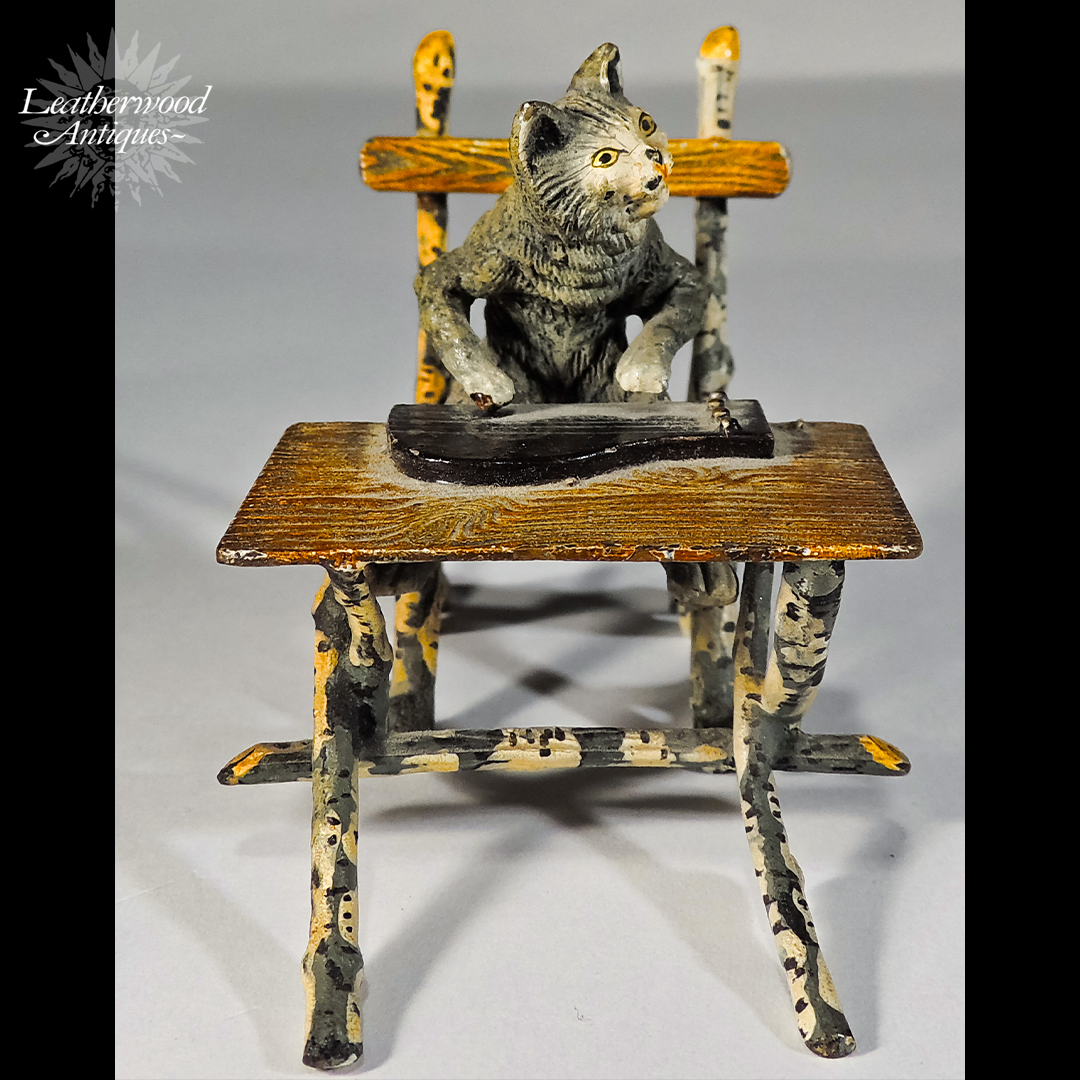Cold-painted Austrian / Vienna Bronze Carpenter Cat at work. c. 1930.